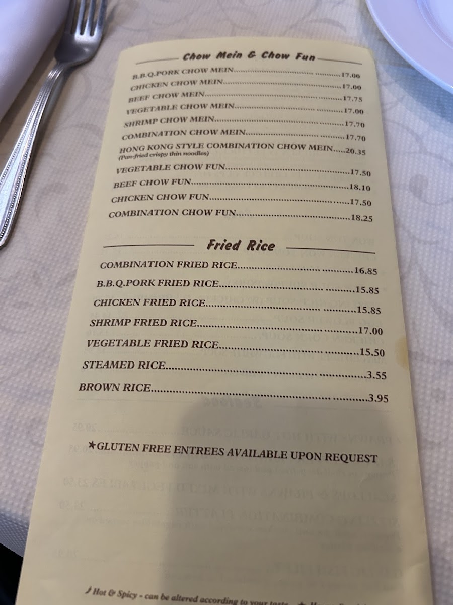 As you peruse the menu, your taste buds will be tantalized by a remarkable selection of dishes, each crafted with an artisanal touch. Dive into the Chow Mein & Chow Fun offerings, where you can savor the exquisite Hong Kong Style Combination Chow Mein—pan-fried crispy thin noodles topped with BBQ pork, succulent shrimp, tender chicken, and a medley of fresh vegetables. The hearty Beef Chow Fun and Chicken Chow Mein promise to deliver that comforting, home-cooked feel with every bite.