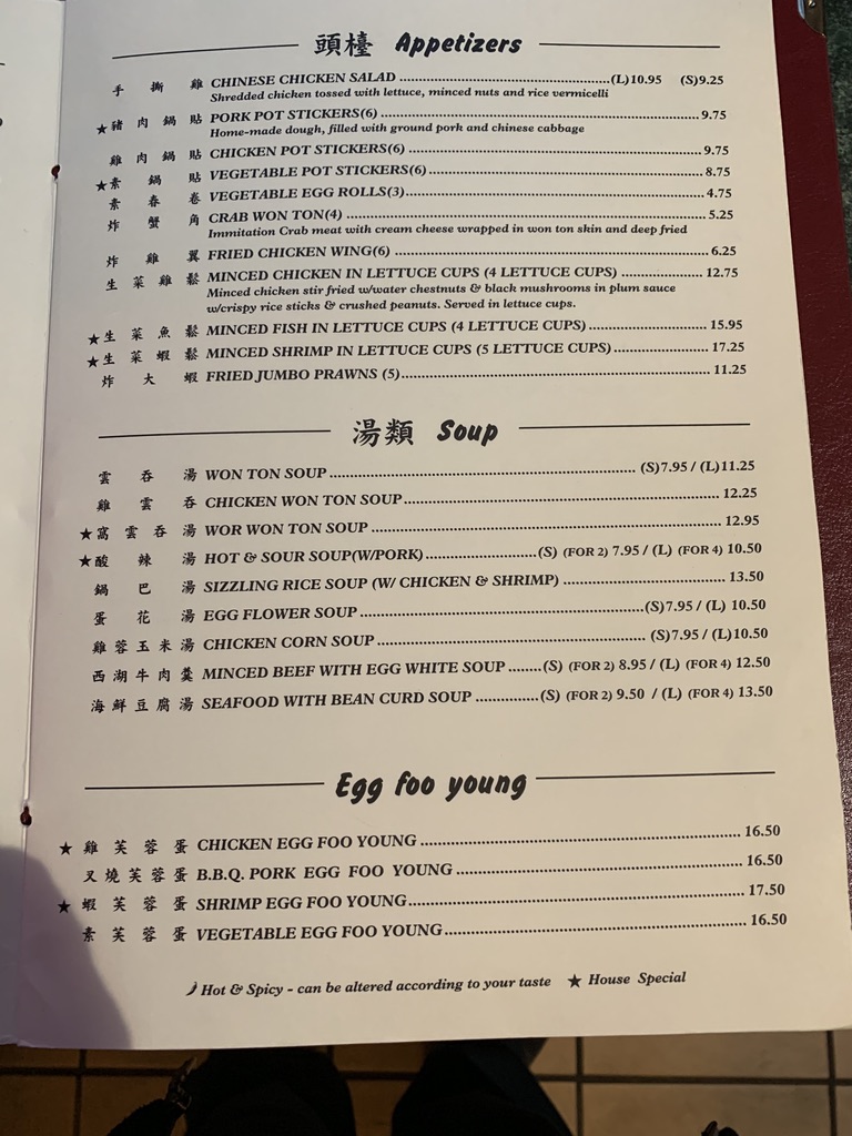 Vegetarian options are plentiful as well, with standouts including the light and delicate Vegetable Chow Fun and the indulgent yet healthy Vegetable Egg Foo Young. Diners will appreciate the focus on fresh ingredients, leaving you fulfilled yet not overstuffed—a delicately balanced feat in Chinese cuisine!